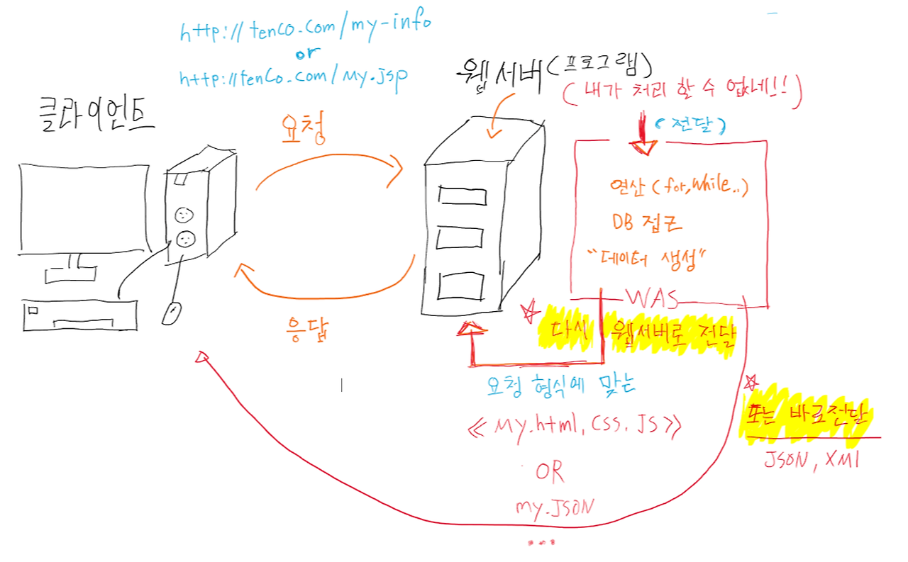 즉, 웹 서버로부터 오는 동적인 요청을 처리하는 서버를 말한다. 웹 서버와 컨테이너를 붙여놓은 서버라고 생각할 수 있다.