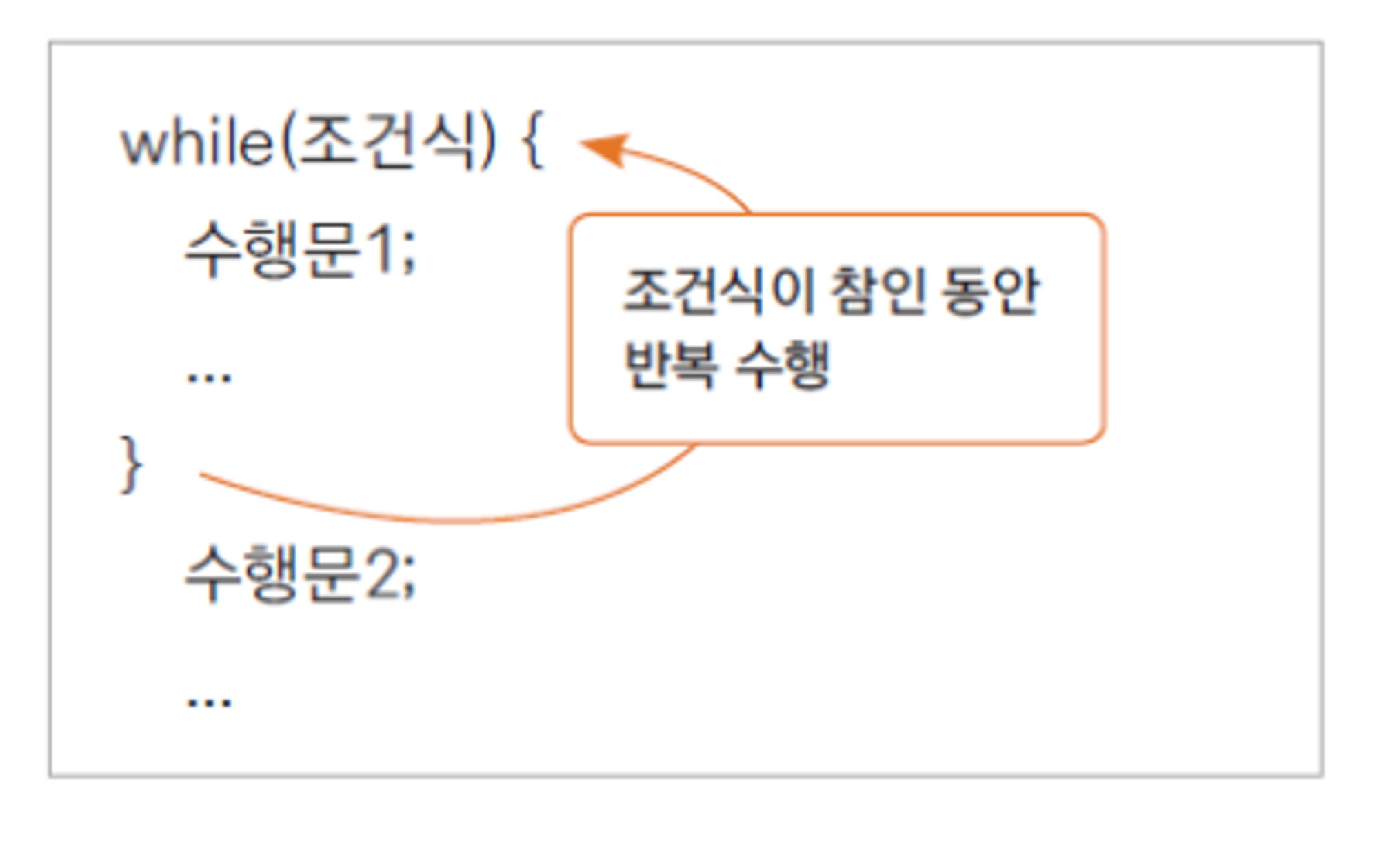 - 주어진 조건에 맞는 동안(true) 지정된 수행문을 반복적으로 수행하는 제어문