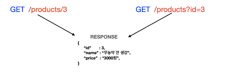 - URL 뒤에 '?'를 붙이고 파라미터를 key-value 쌍으로 전달한다.