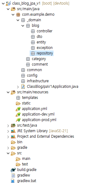 스프링 부트와 JPA 프로젝트에서 패키지 구조를 구성하는 트렌드는 도메인 주도 설계(Domain-Driven Design, DDD)의 원칙을 사용하는 사례가 많이 보인다. 이는 애플리케이션의 구조를 기능이나 역할에 따라 나누기보다는, 도메인 중심으로 나누어 애플리케이션의 유지보수성과 확장성을 높이려는 의도나 방식이다.