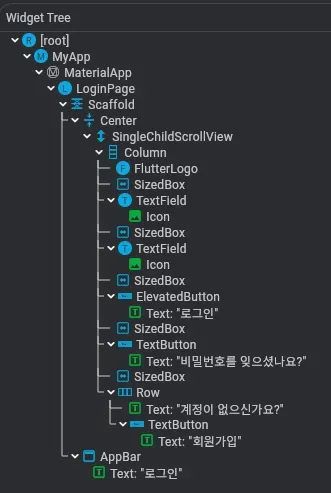 - icon : 아이콘을 TextField에 직접 추가하는데 사용 (예, icon : Icon(Icons.settings))