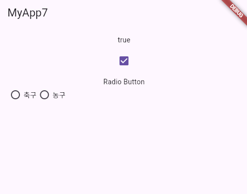 - 체크박스 : 사용자에게 true 또는 false를 입력받는 기본 위젯