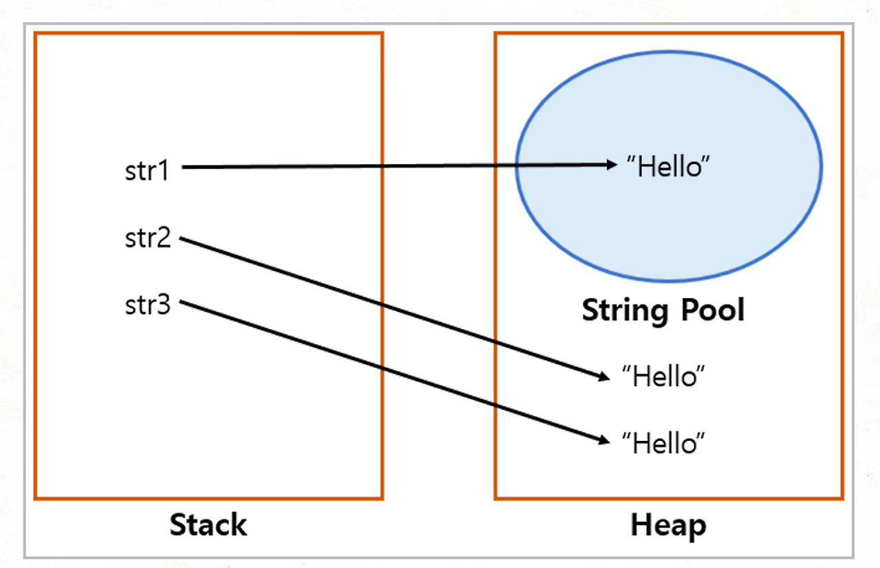 - 힙 메모리에 인스턴스로 생성되는 경우와 상수 풀(constant pool)에 있는 주소를 참조하는 두 가지 방법