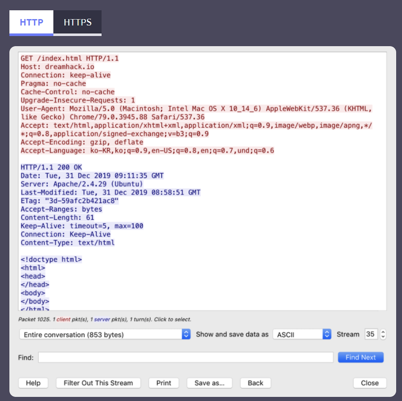 HTTP 메시지 : HTTP 서버와 클라이언트가 교환하는 데이터. 헤드와 바디로 구성되며, 각 줄은 CRLF로 구분 됨.